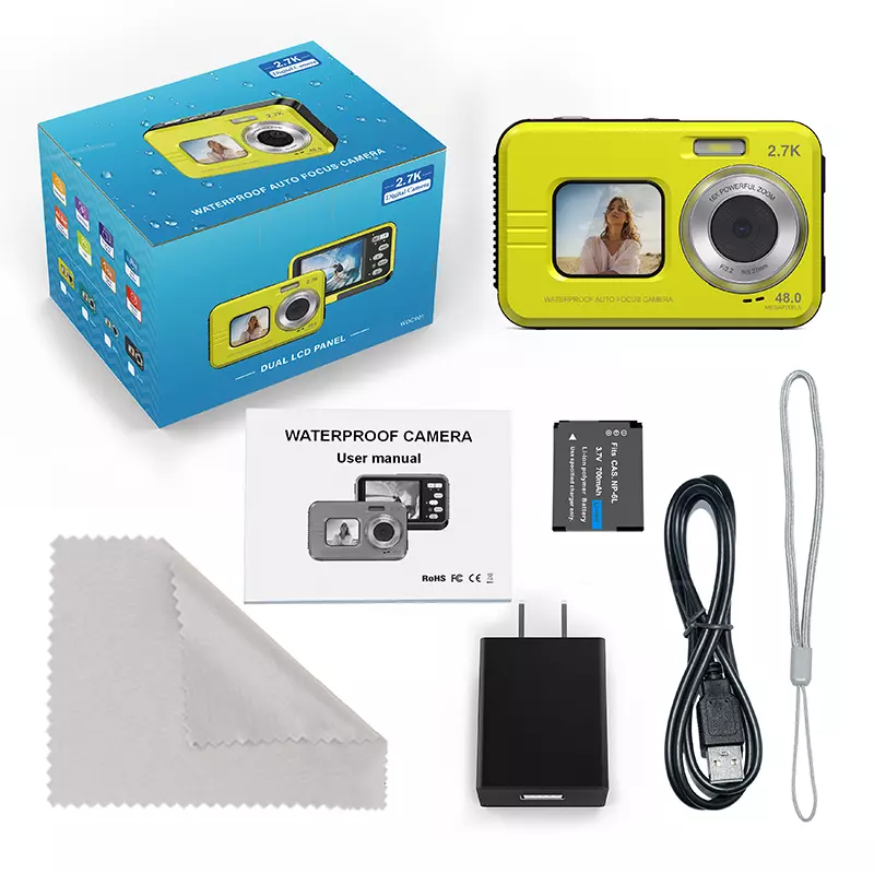 The WDC901 is a high-performance sports camera for outdoor and dynamic shooting. It boasts up to 48.0MP resolution with auto-focus and large depth of field, plus 4K video recording for sharp, high-definition moments. Dual screens (1.7-inch front, 2.8-inch rear IPS) enable intuitive operation. IP68 waterproof (grade 8) and dustproof (grade 6) design supports long underwater use, while a custom high-standard mic and speaker ensure clear audio. Its pocket-size build makes it portable for use anywhere, ideal for outdoor sports and daily shooting.
